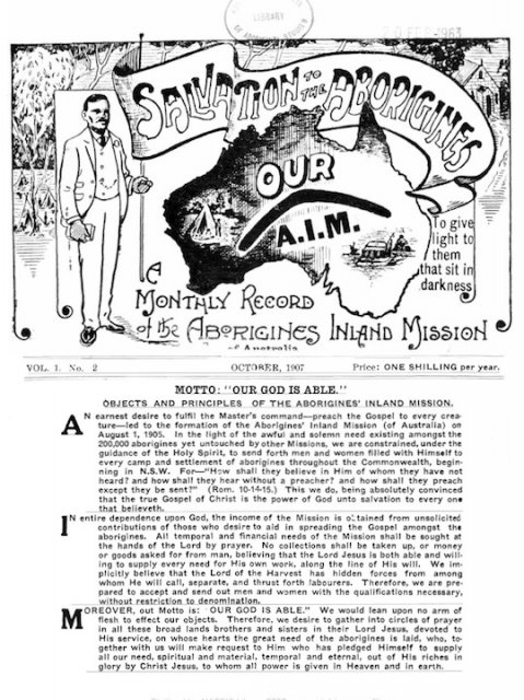 Aborigines Inland Mission monthly record: Our AIM, cover Oct 1907