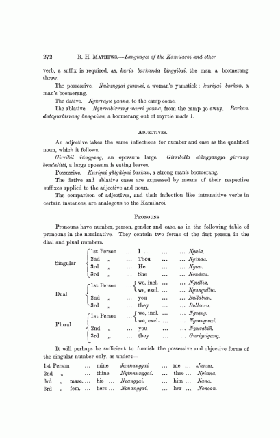 R.H. Mathews publishes Darkinung Language 1903, Adjectives and Pronouns p272